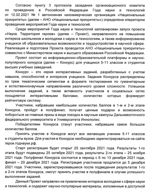 Проект “Наука. Территория героев” в рамках мероприятий Года науки и технологий