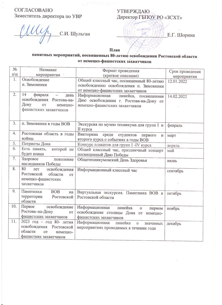 План памятных мероприятий, посвященных 80-летию освобождения Ростовской области от немецко-фашистских захватчиков