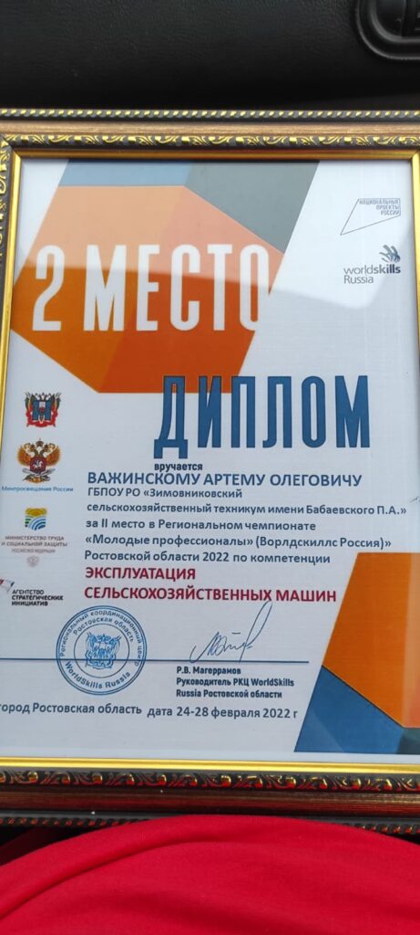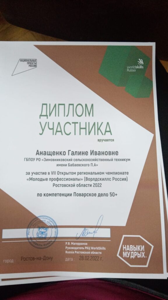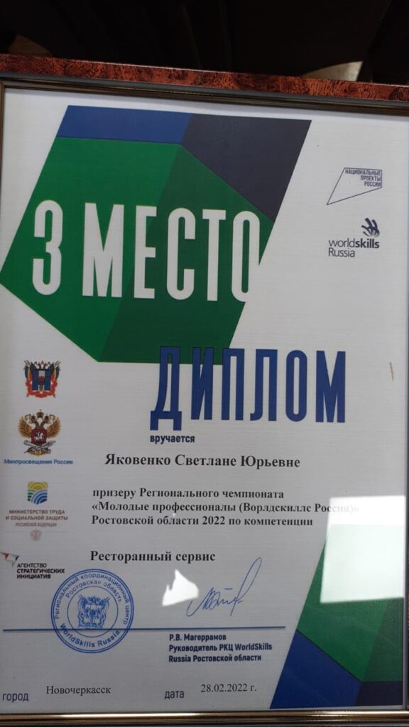 Результаты участия техникума в VII Открытом региональном чемпионате “Молодые профессионалы” (Ворлдскиллс Россия) Ростовской области 2022 по компетенции: