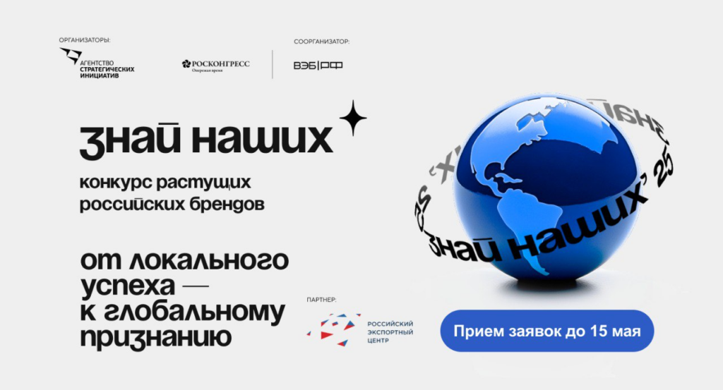 - Сбор заявок до 15 мая 2025 г. на платформе идея.росконгресс.рф/brand.